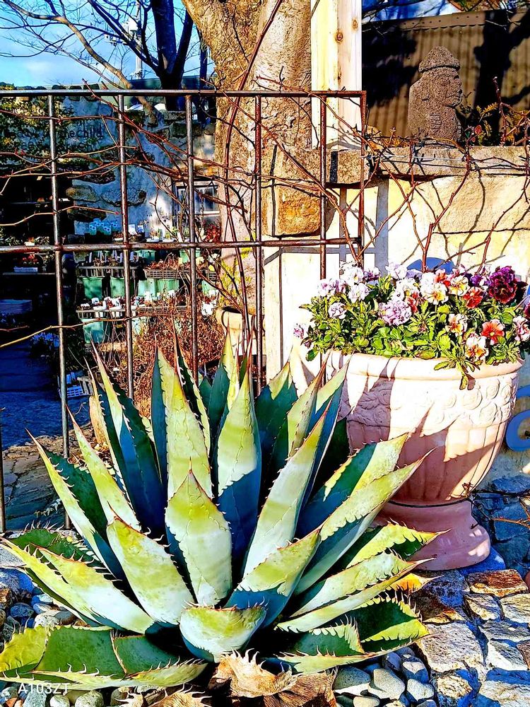 店先に大きな、アガベがあります。