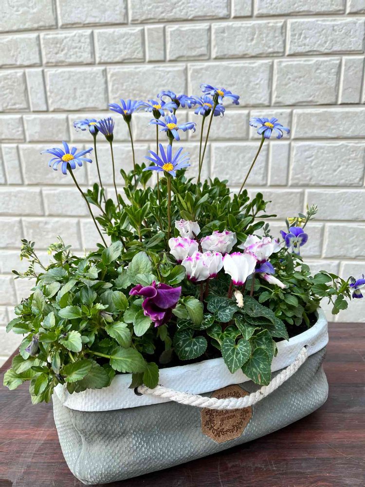 白で縁がピンクのシクラメンが全体をまとめている感じがしてとっても素敵です✨✨