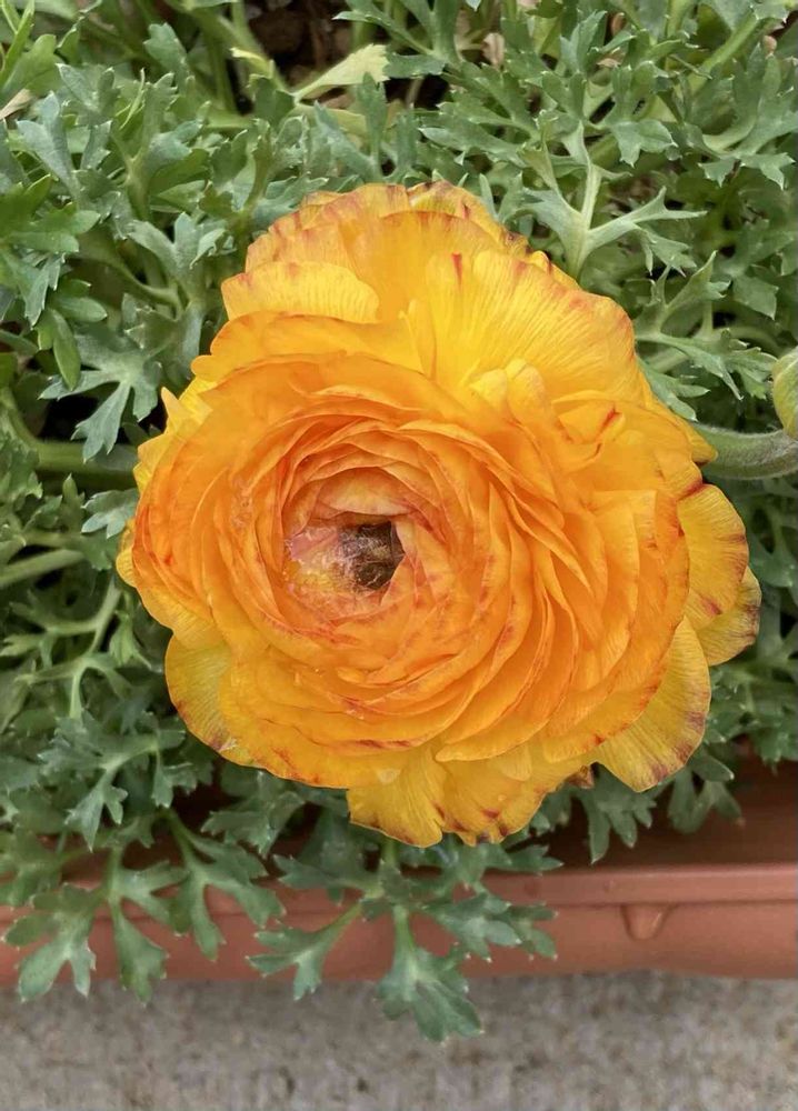 ラナンキュラス三つ、どれも小さいのに迫力ありますね✨❤️✨💛✨🧡✨