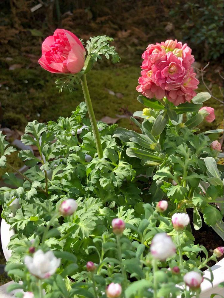 八重咲きストックも好みの色合いのお花に出会うことができ、春らしい寄せ植えにすることができました😊
