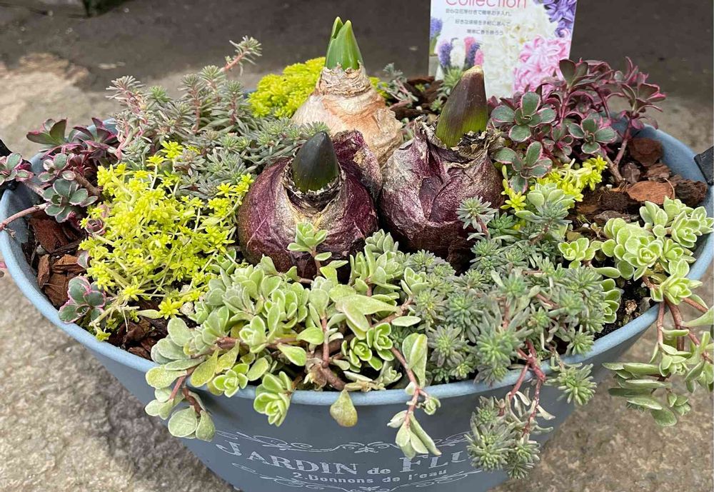 芽出し球根の寄せ植えでいつも悩むのが、一緒に植える植物の選び方です📝