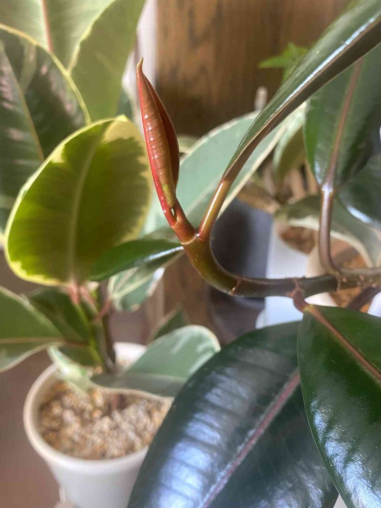 曲げ木チャレンジ中のフィカスバーガンディに新芽🌱✨