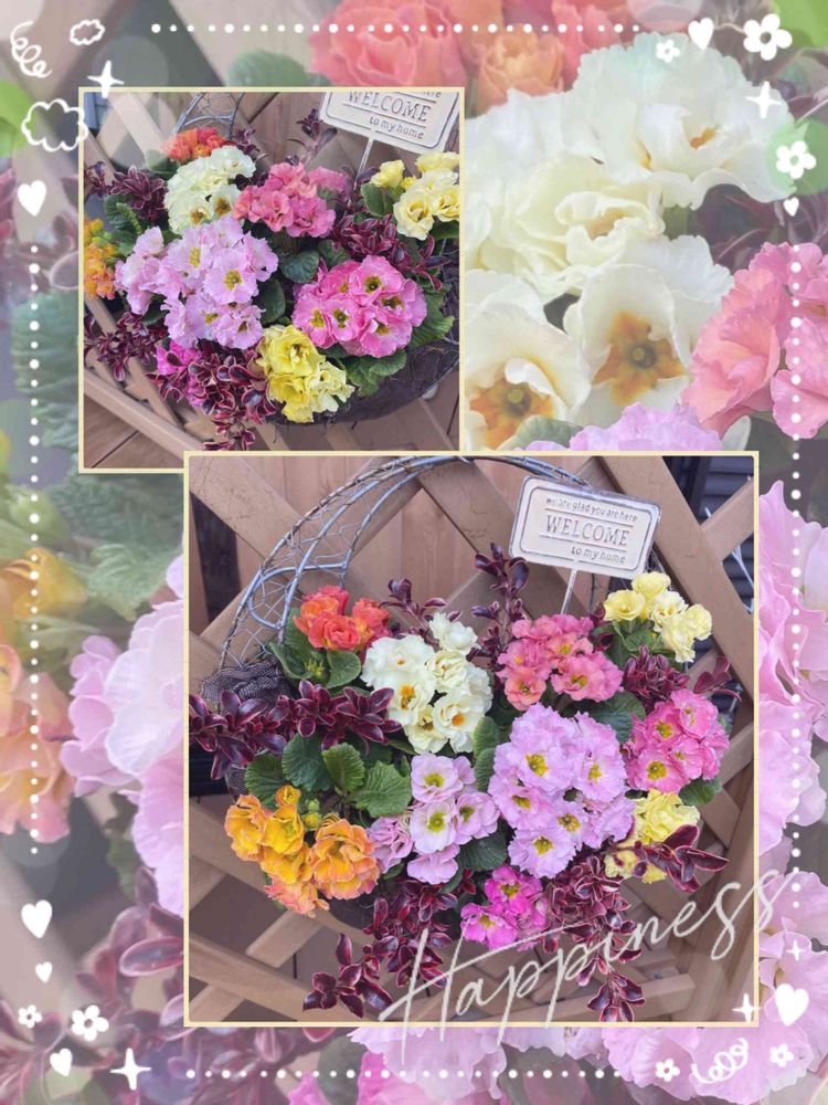 ジュリアンのハンギングの寄せ植えしました🥰花色は、春らしいパステルカラーを選んで💕
