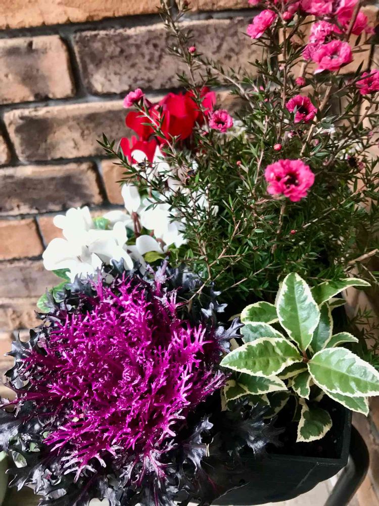まだまだ綺麗でこんな寄植えがあると玄関が華やかで良いですね💜☘️💗🌿