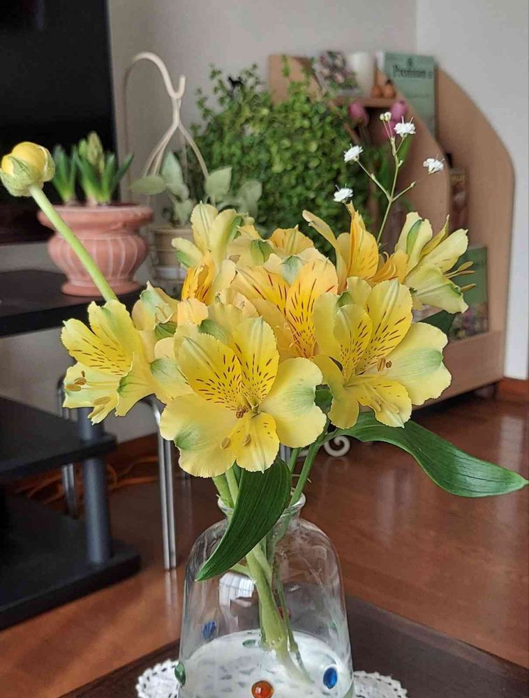 ブーケ💐の中に入っていたアルストロメリアはリビングに生けました🎵