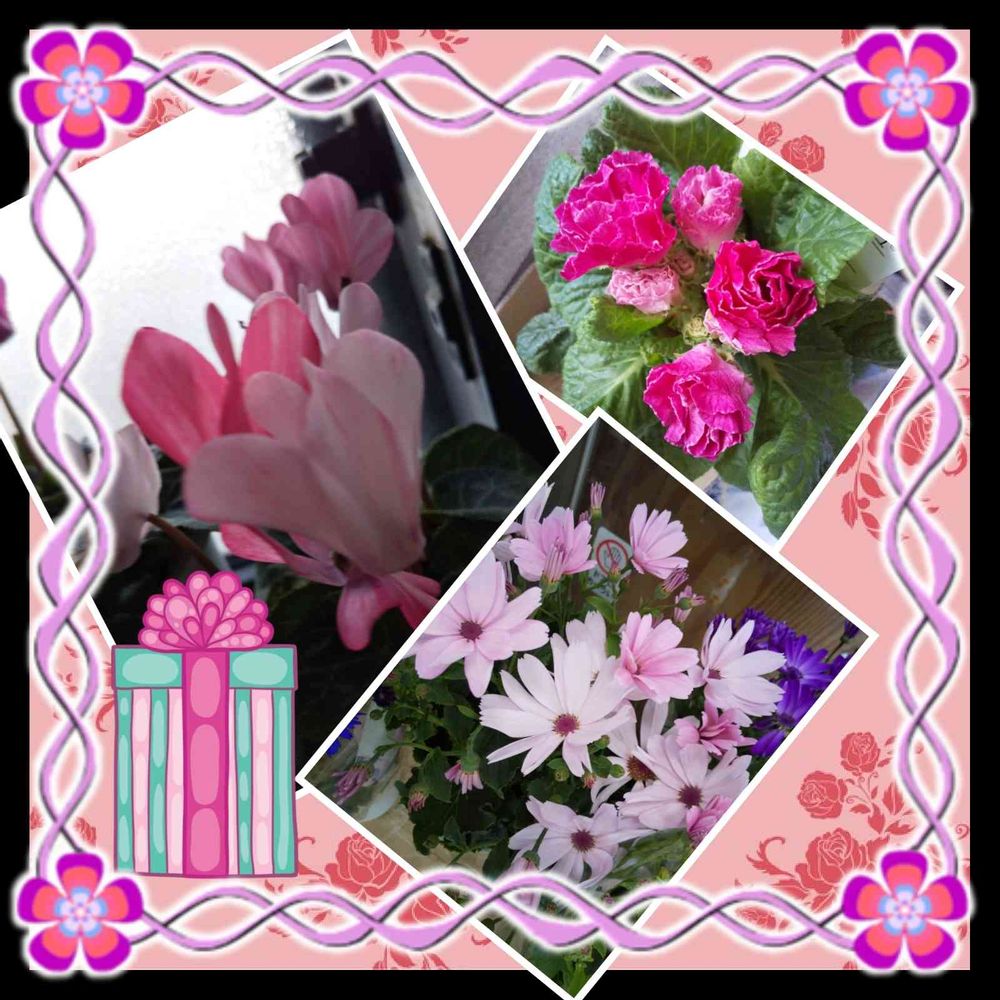 お家のガーデンシクラメン・クレヨン↖️…とプリムラジュリアン…🍓のミルフィーユ…↗️