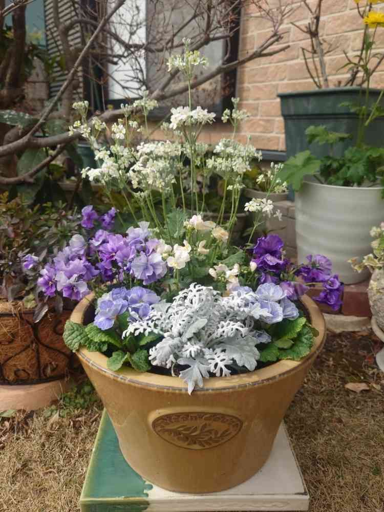 プリムラ「アクアマリン」を使った寄せ植え、楽しみにしていました☺