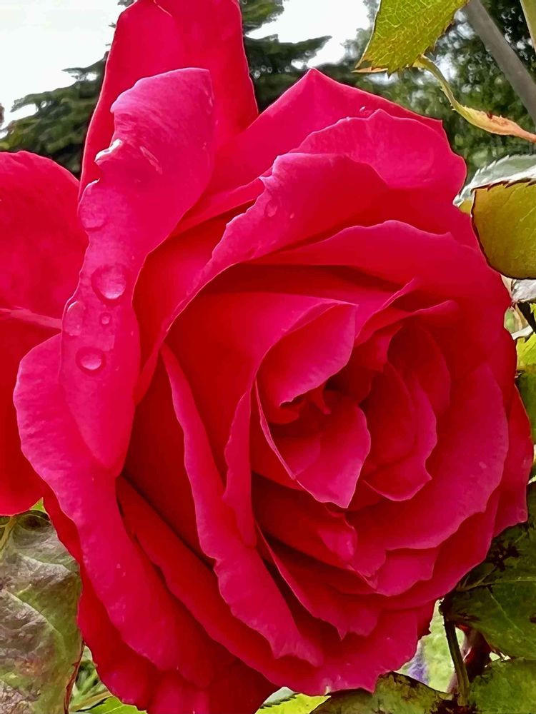 雨上がりに濃いピンク色のバラ🌹を見つけました😊