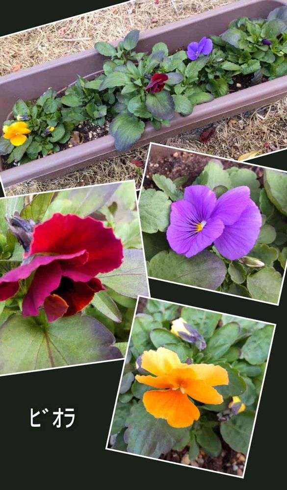 お隣さんに 小さな苗で 戴いて 今朝又 違う色のビオラが 開花しました🥰