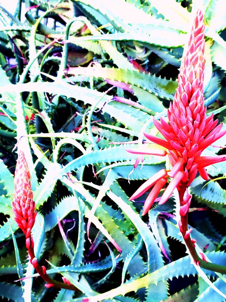 寒風のなかで真っ赤な花をつけたアロエがとっても綺麗でした😊❣️