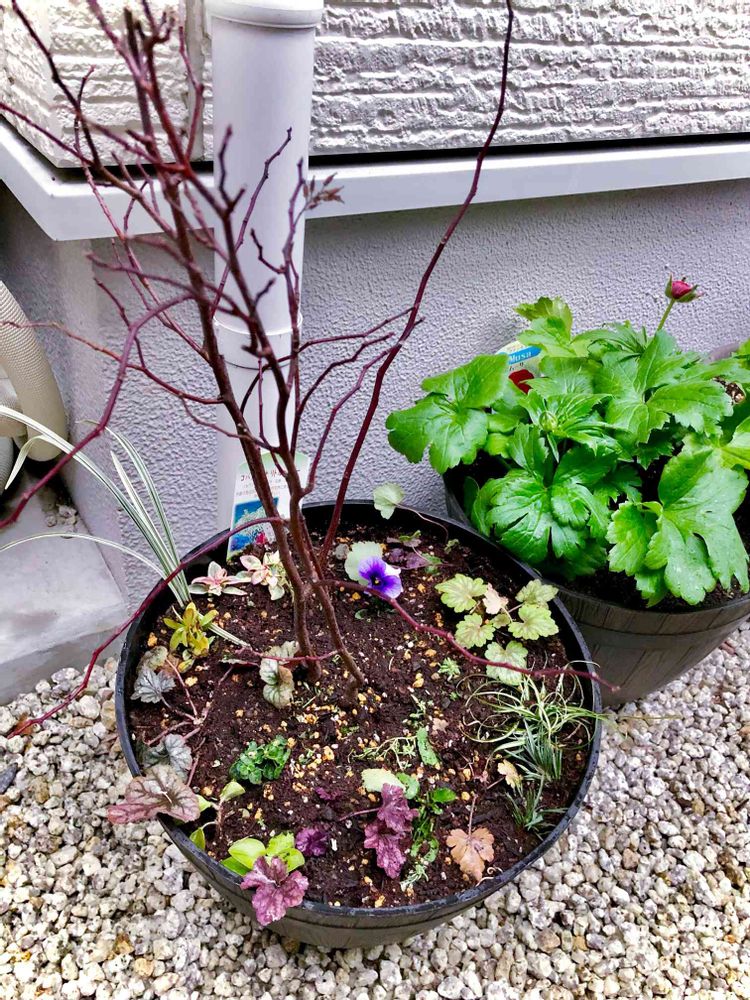 コバノズイナリトルヘンリーの株元に、小庭に挿し芽していたヒューケラや、リシマキアリッシー カラーリーフで落葉中のコバノズイナちゃんを華やかに✨春までに、みんな根付いて素敵な光景になってくれたら嬉しいなぁ〜😆