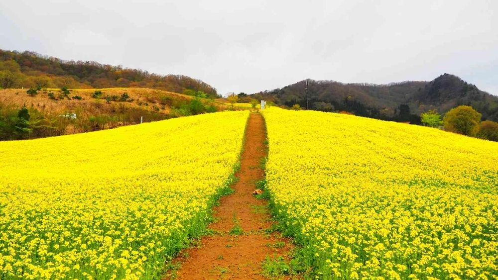 凄い❣️ 菜の花だ〜左右にいっぱい⤴️⤴️⤴️