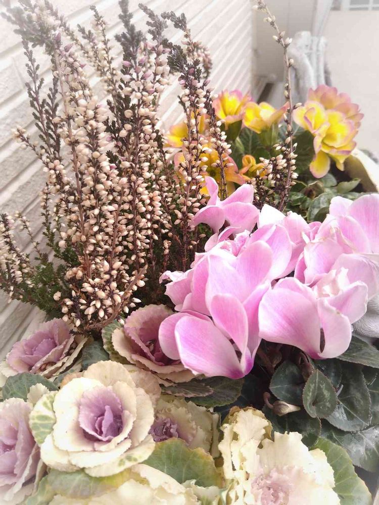 ピンクシクラメンの奥に黄色シクラメン 何とかガールがいるんだけどお休み中💦