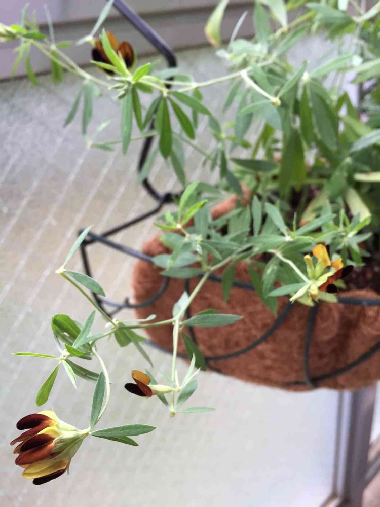 あまり見かけないなぁと一目惚れしてハンギングで寄せ植えしてみました。