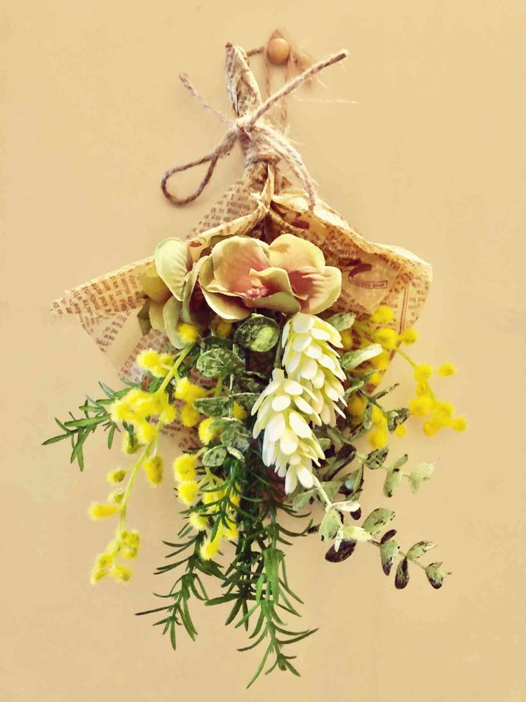 本来はワークショップで、教わりながら作るのですが、コロナ渦の為、花材等がインストラクションと共に郵送されて来ました。最後のペーパーラッピングが上手く出来ませんでした😦