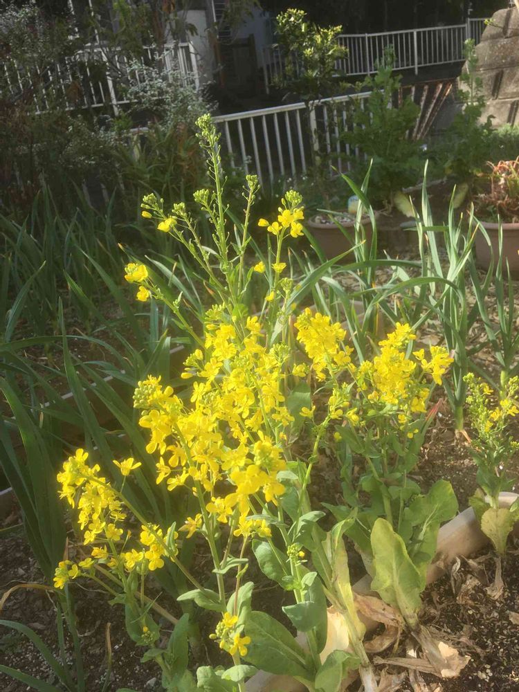 庭で小松菜🥬のお花を咲かせて、種取りしているところです。