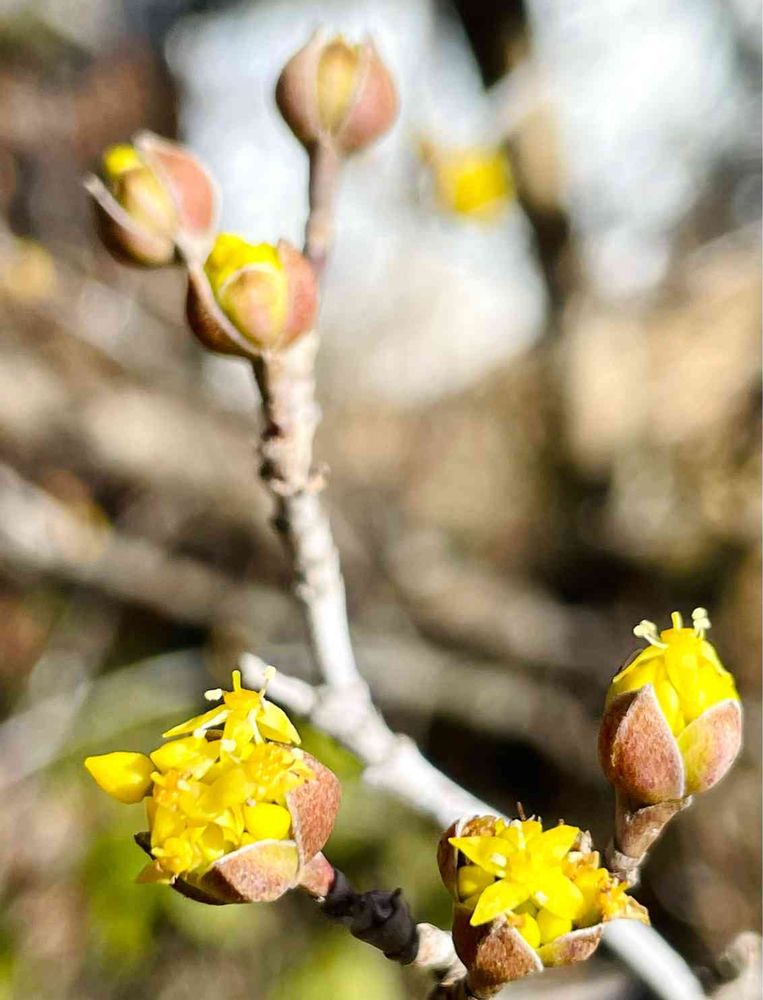 サンシュユは実もグミみたいで魅力的だけど、花も小ぶりで可愛いですよね💖