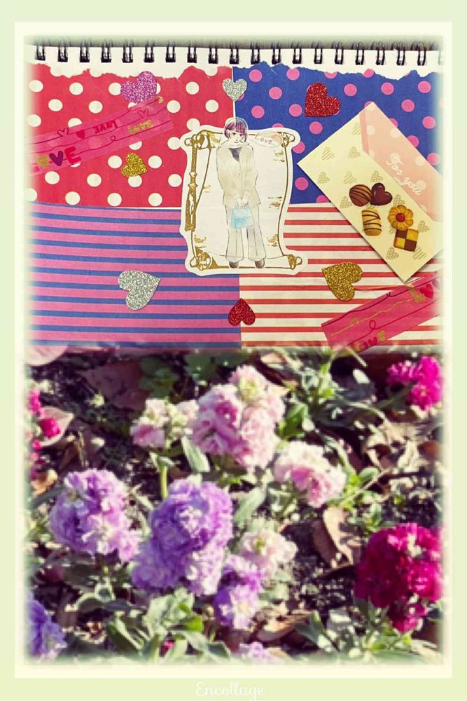 上の写真は最近TiktokやYouTubeで流行ってるコラージュを昨日から始めたのでupしてみました♡タイトルは『バレンタイン❤』です(⑅•ᴗ•⑅)◜..°♡気持ちを落ち着かせて楽しみながら出来て良かったです♡