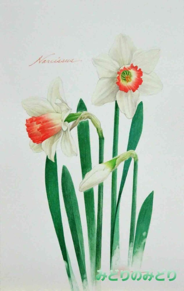 みどりのみどりさんのスイセン,スイセン ピンクチャーム,水彩画の投稿画像