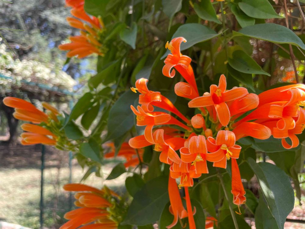 温暖なバンガロール🇮🇳の植物園でオレンジのぷりぷりとしたお花が咲いていました。何というお花かな?