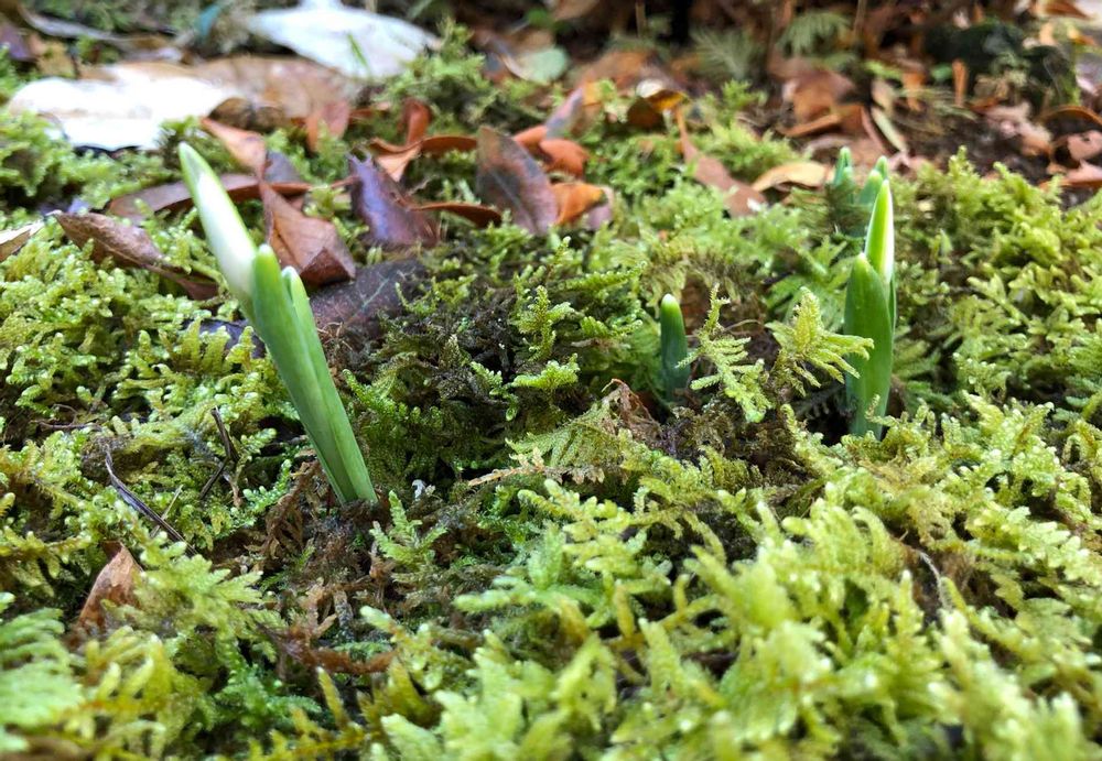 苔の庭で春を知らせる白いお花を咲かせてくれるのを楽しみにしています😊