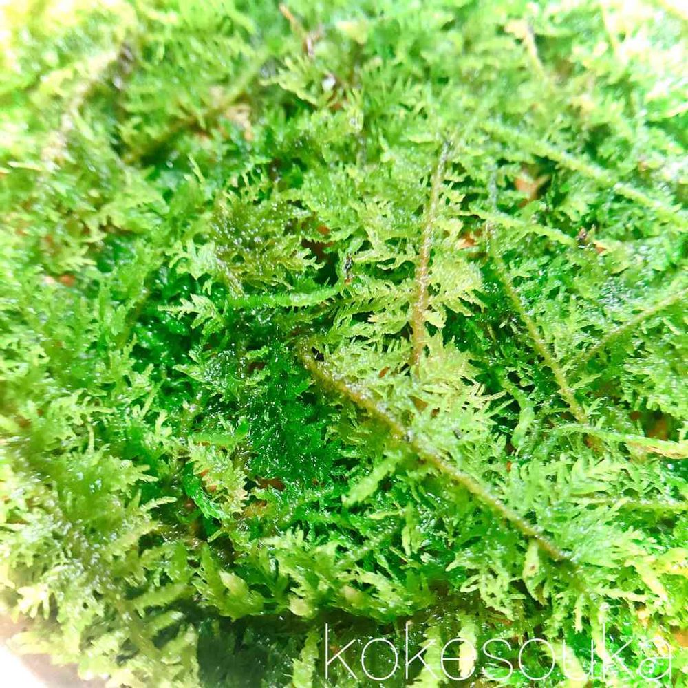 繊細な葉が美しいシノブゴケ。苔玉にもよく使われています。直射日光に弱く、常に葉が湿度を保つ環境を好みますが、徒長しやすいため、通気のある容器での栽培に適しています。