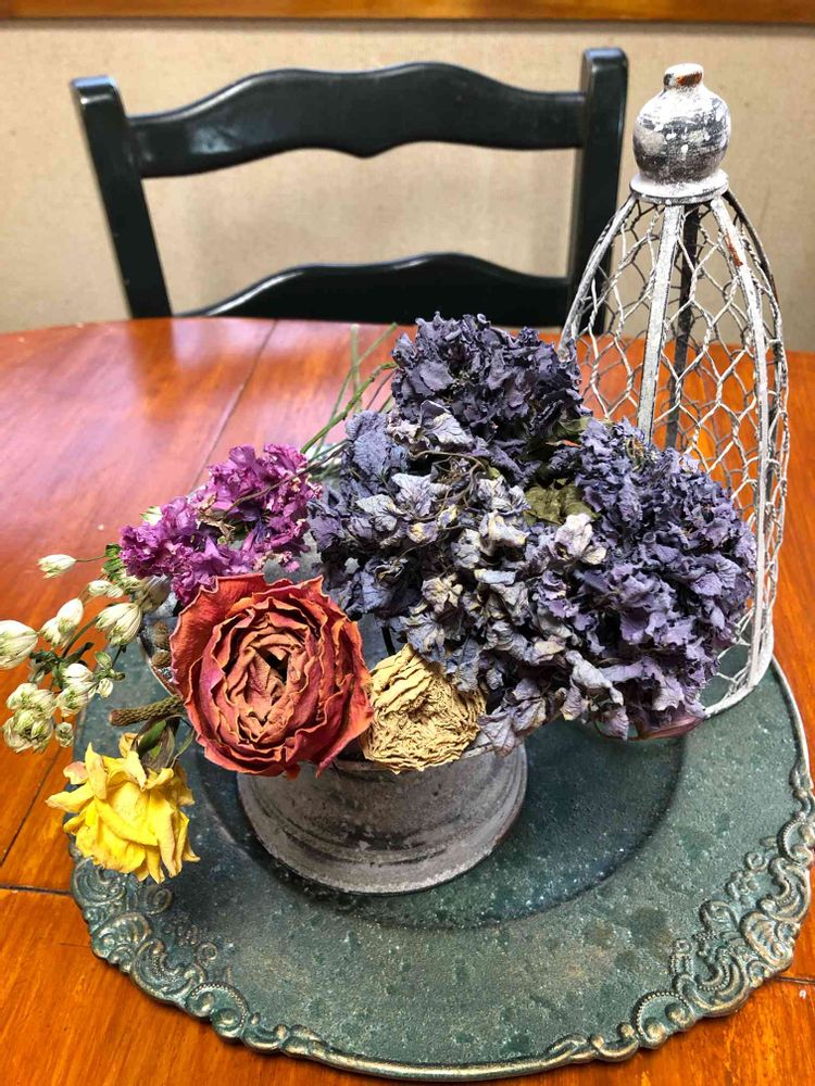 昨日購入した台付のカゴオシャレにドライフラワーとパチリ