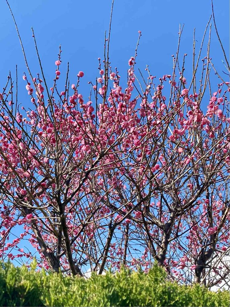 紅い梅の花🌸がたくさん咲いていて映えてますね😃 暖かな日が続いてたけど