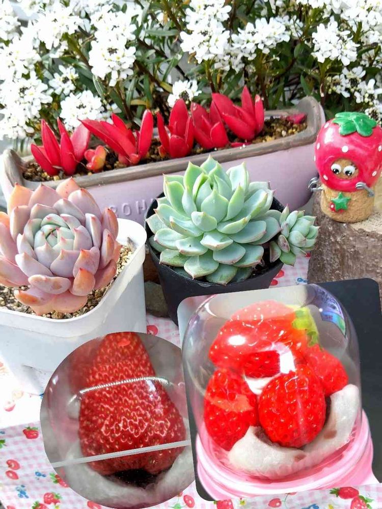 多肉たちもかわいいけど、いちご大福に目がいっちゃったよ(⁎›௰‹⁎)ෆ⃛