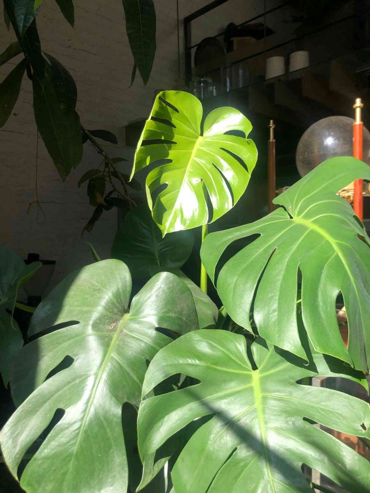 バイトしてるブルックリンのカフェのモンステラさん。光が当たって調子良さそう✨