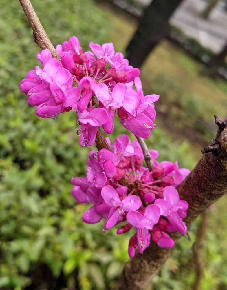 ハナズオウのお花が雫を纏って美しさが倍増ですね(ᵒ̴̷͈ᗨᵒ̴̶̷͈ )✧