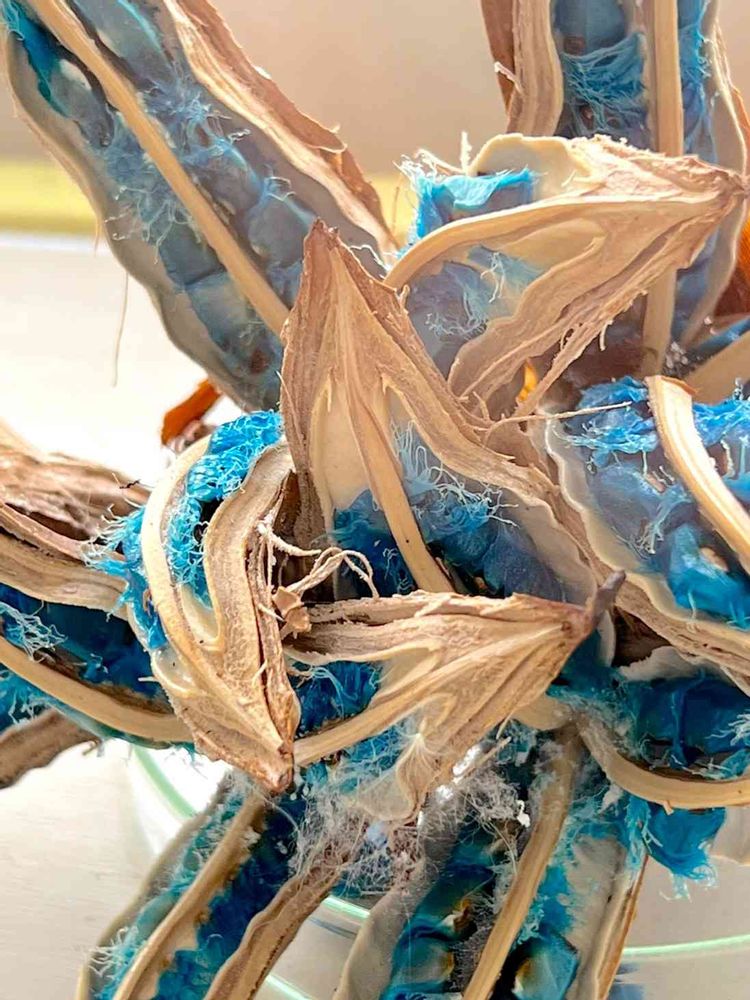 種は白くて周囲のクッションが青い繊維なのよ💙