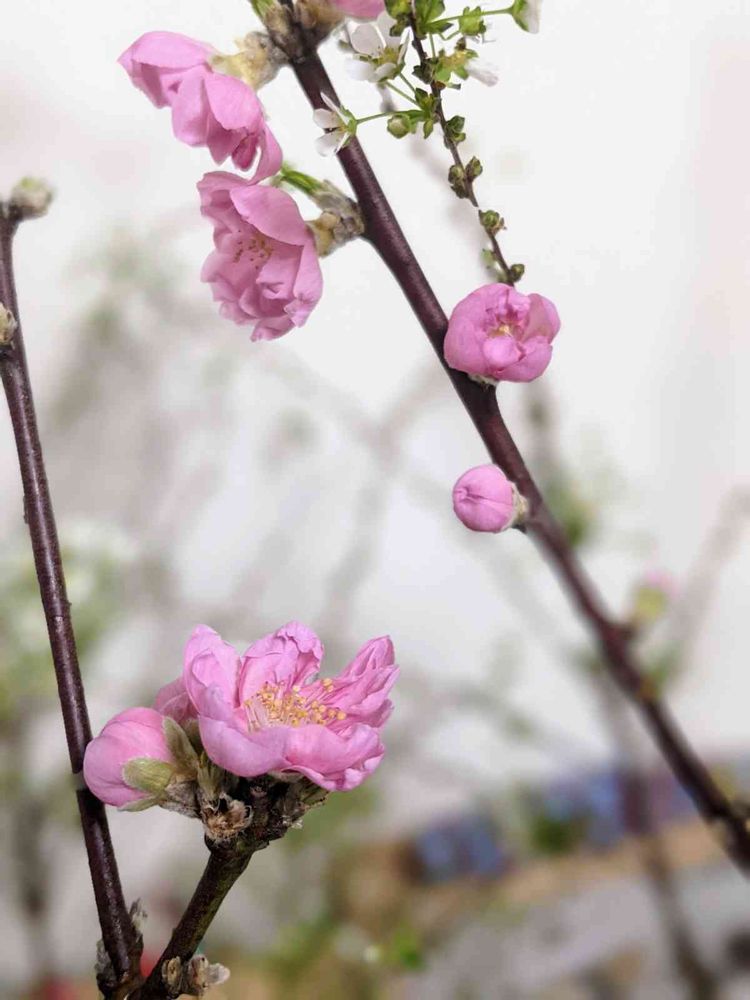 桃の花🌸少しづつ開花してカワ(ღˇᴗˇ)。oイイ!!