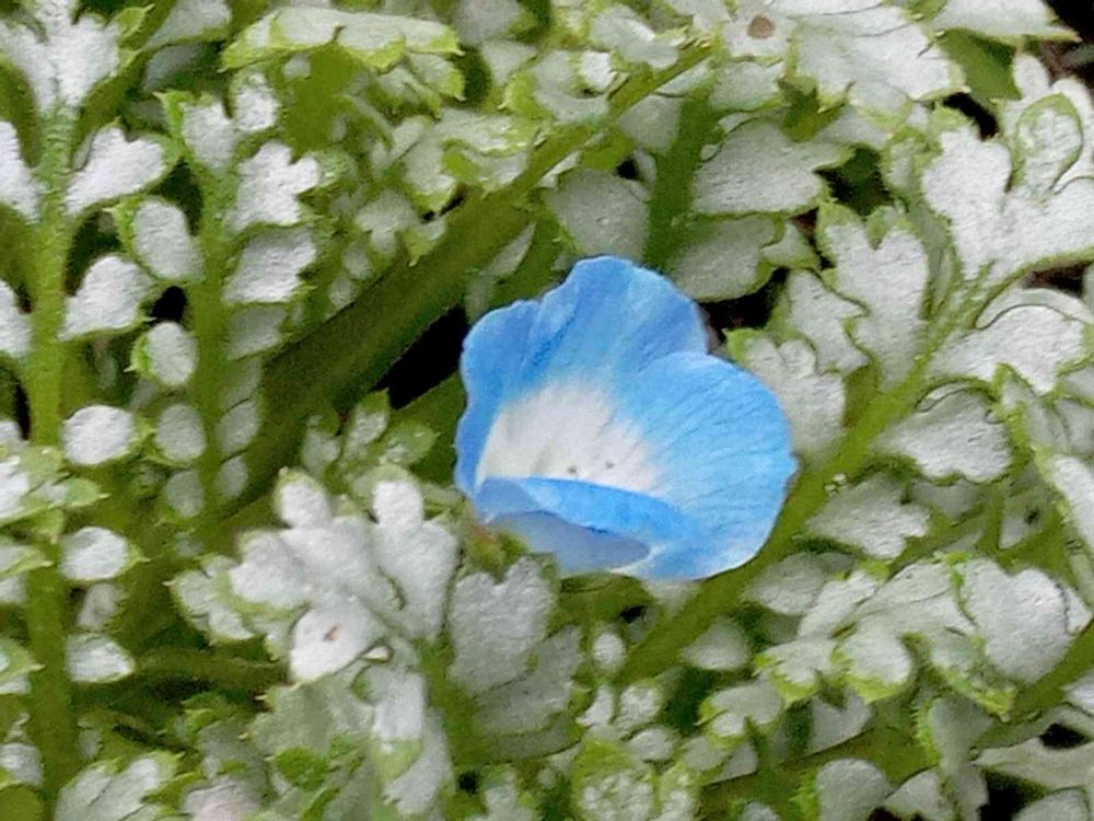 たった一株しかない、ネモフィラさんの一輪目が咲きましたよぉ🙌