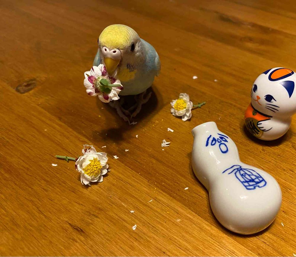 愛でることも食べることもなく、ひたすらついばみ散らかしてます😅