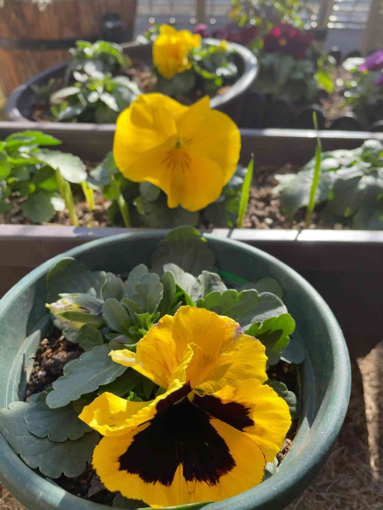 種蒔きっ子のパンジー、ビオラ、一番花は両方黄色だったし、ミックス色蒔いたけど黄色率かなり高め…💦