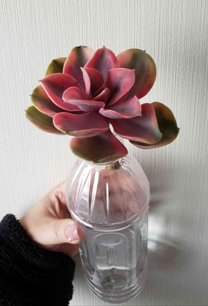 デカイ&茎?が長く安定しないので、ホルウェイ錦と一緒に初のペットボトル蒸らし発根作業です🌱