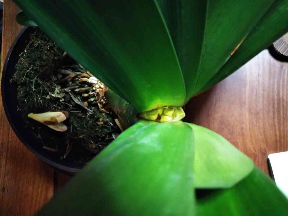 「君子蘭・クンシラン」花芽(今日確認)出てましたが、一輪枯れ状態😨今引っこ抜き左に置いてます(白い歯🦷)。和室は暖房なし、寒さ体に堪えたか?和室窓側から中テーブルにシンビジウムと一緒にしました、こちらは元気です。成長眺めます🙇咲いてください😞