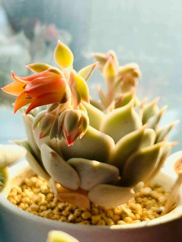 うちにいる多肉たちの花は暖色系が多めです🌸