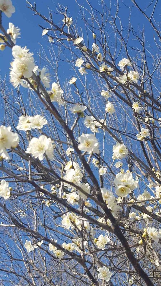 ペケ子さんのお庭の白梅さんも暖かくなれば咲きますね🌸
