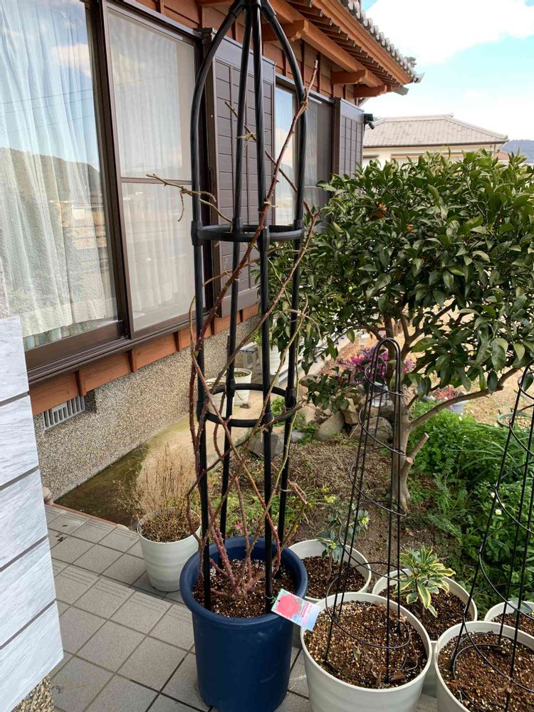 週末にやったつるバラの誘引とクレマチスの切り戻し。春のバラの香りの玄関が楽しみです^ ^