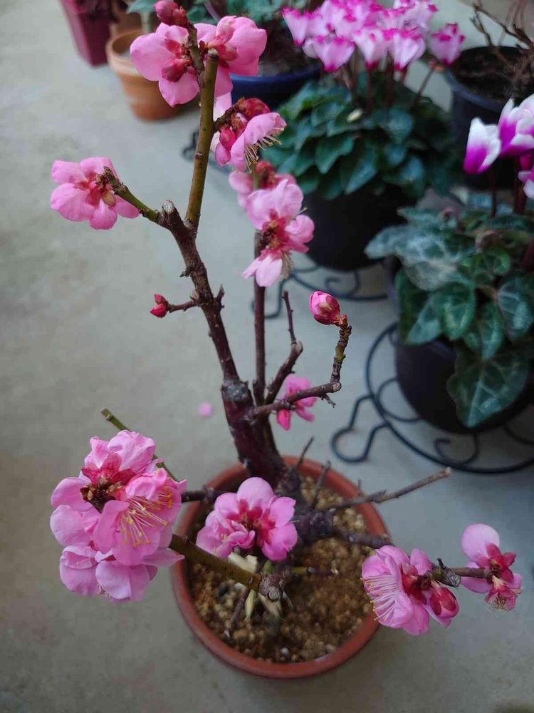 こんばんは😉✨紅梅が今年もたくさん咲いてくれて嬉しいです🌸ガーデンシクラメンは花が長持ちで良いですね😉🌱今日は結構雪が降りましたよね🍃積もらないからいいけど😅車通勤ですか💦気を付けてくださいね(*^-^)