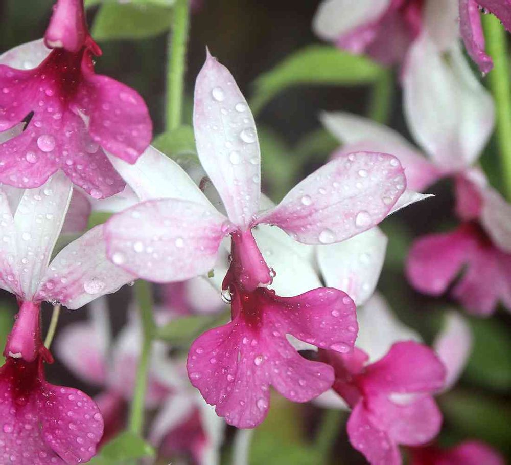 冬から春にかけて新しくできたバルブの基部から、長く花茎を伸ばし、たくさんの花を咲かせる。