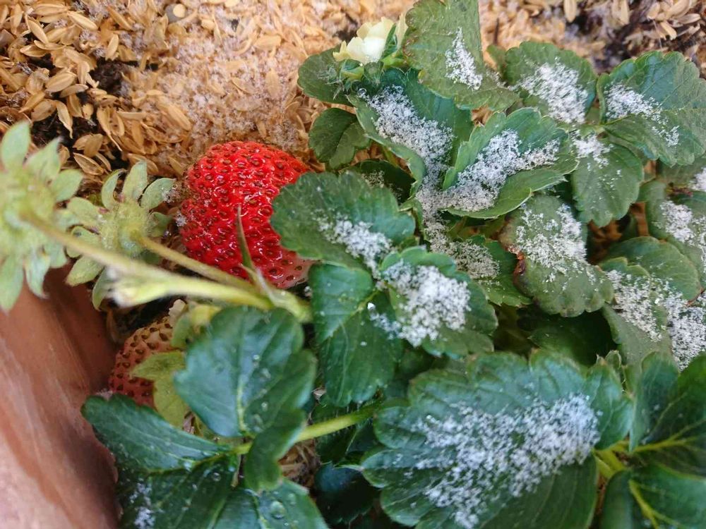 昨夜からの大雪の中軒下のイチゴは赤く染まっています🍓