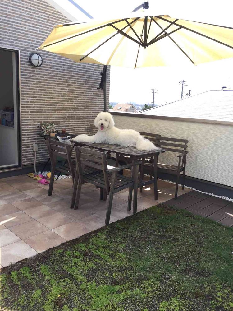 テラスの芝生が枯れてしまったので、ホームセンターで買ってきたクローバーの種をばら撒き放置🌱🍀🌱🍀