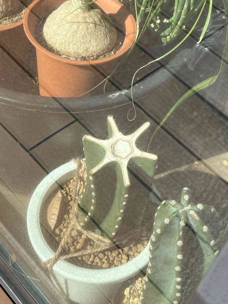 先日お花屋さんで胴切りサボテンを見つけてガラス越しに撮影😃