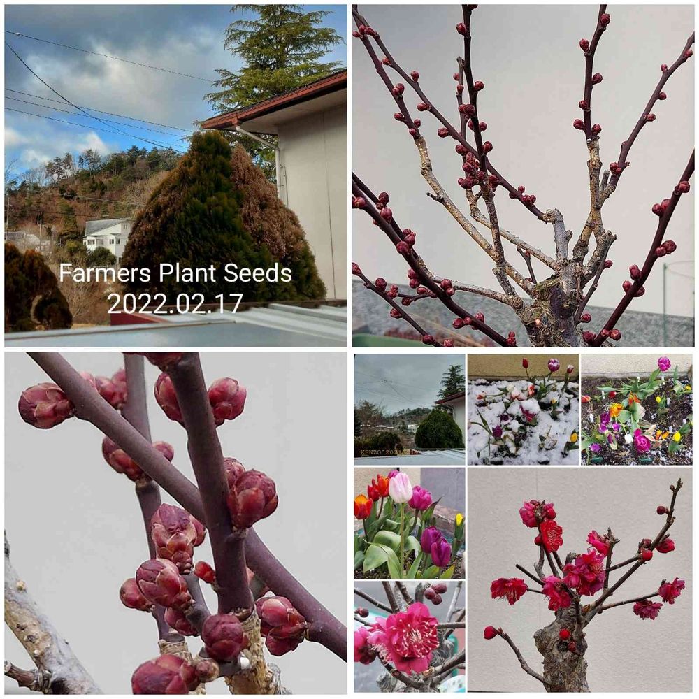 わが家の《紅梅(盆梅)》も未だ蕾の膨らむ気配が感じられない…。⁉️
