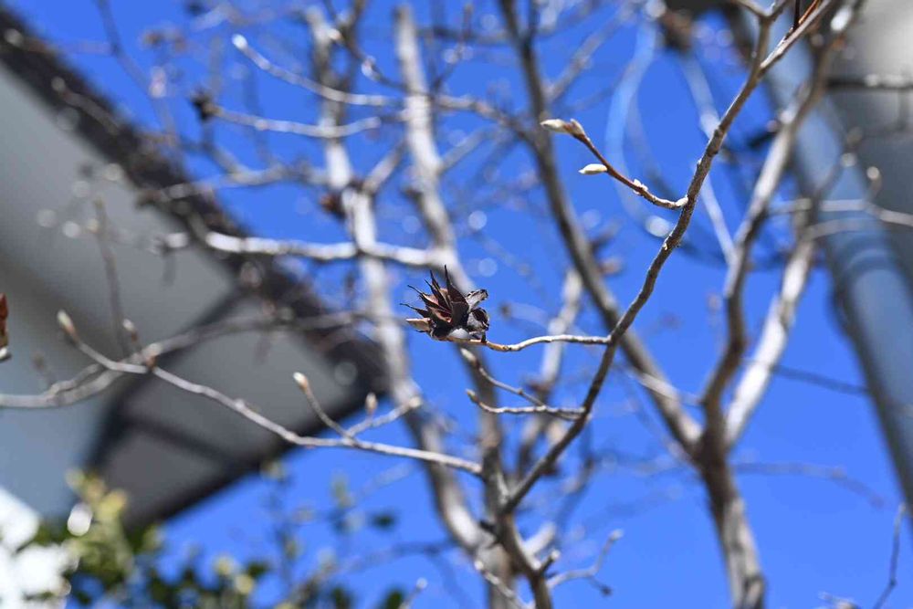 夏椿の枝に昨年の花殻と今年の新芽を見つけて季節の移ろいを感じています♪