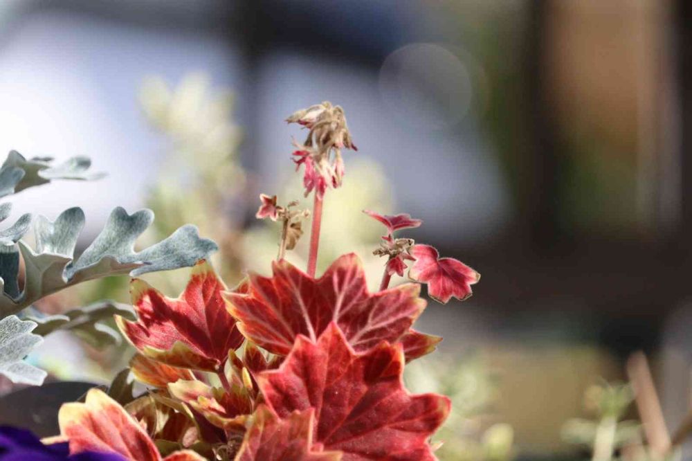 もみじ葉ゼラニュームさんとシロタエギクさん葉牡丹さんの寄せ植えの中に