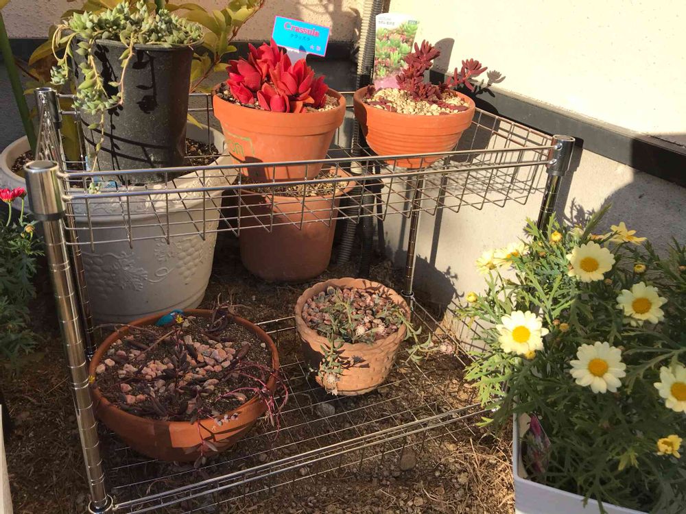 組み立てたのをさっそく庭に置き適当に鉢を置いてみました☘️